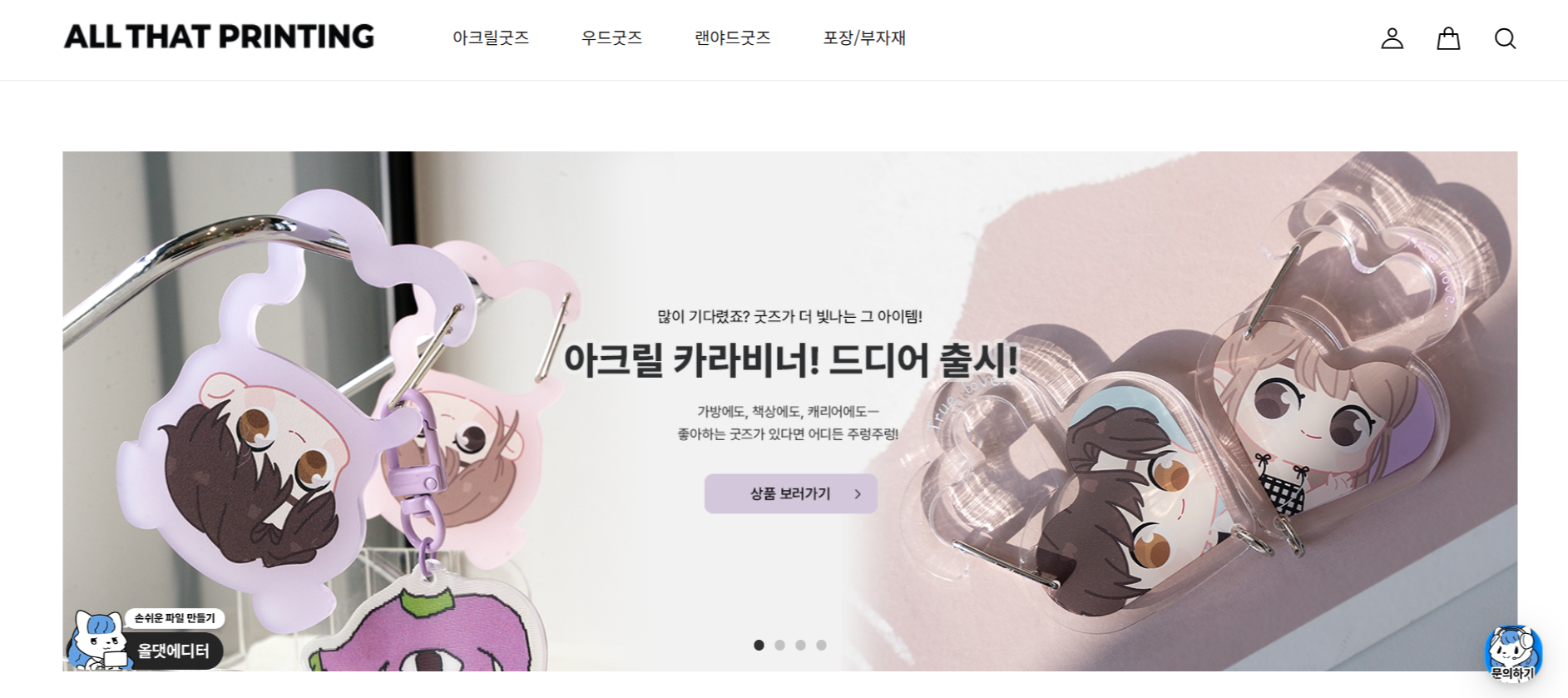 - 다양한 굿즈를 소량으로 제작할 수 있는 사이트입니다. 스티커, 키링, 아크릴 제품 등 다양한 옵션이 있어 선택의 폭이 넓습니다.