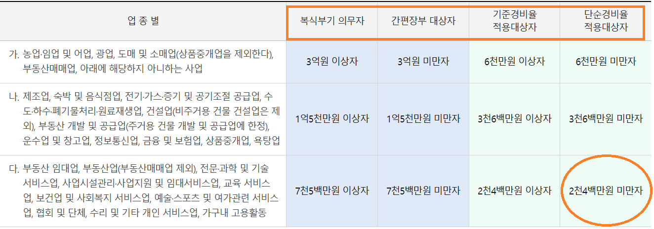 기준 경비율 작성방법 영상 바로가기☞ 복식부기 의무자 작성방법